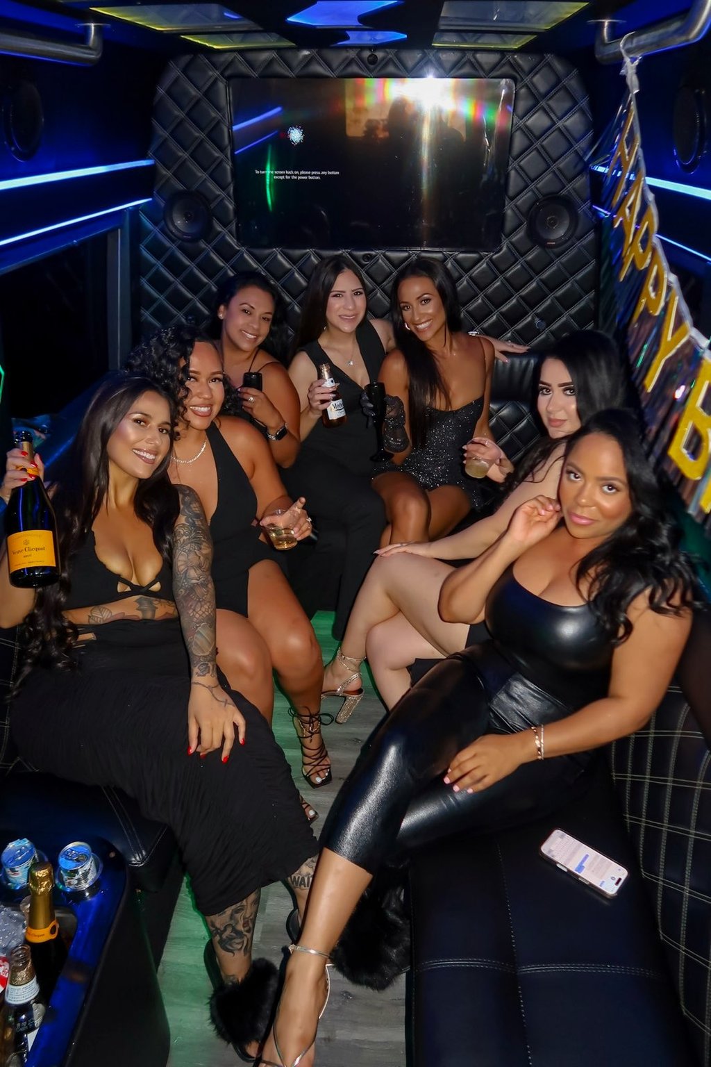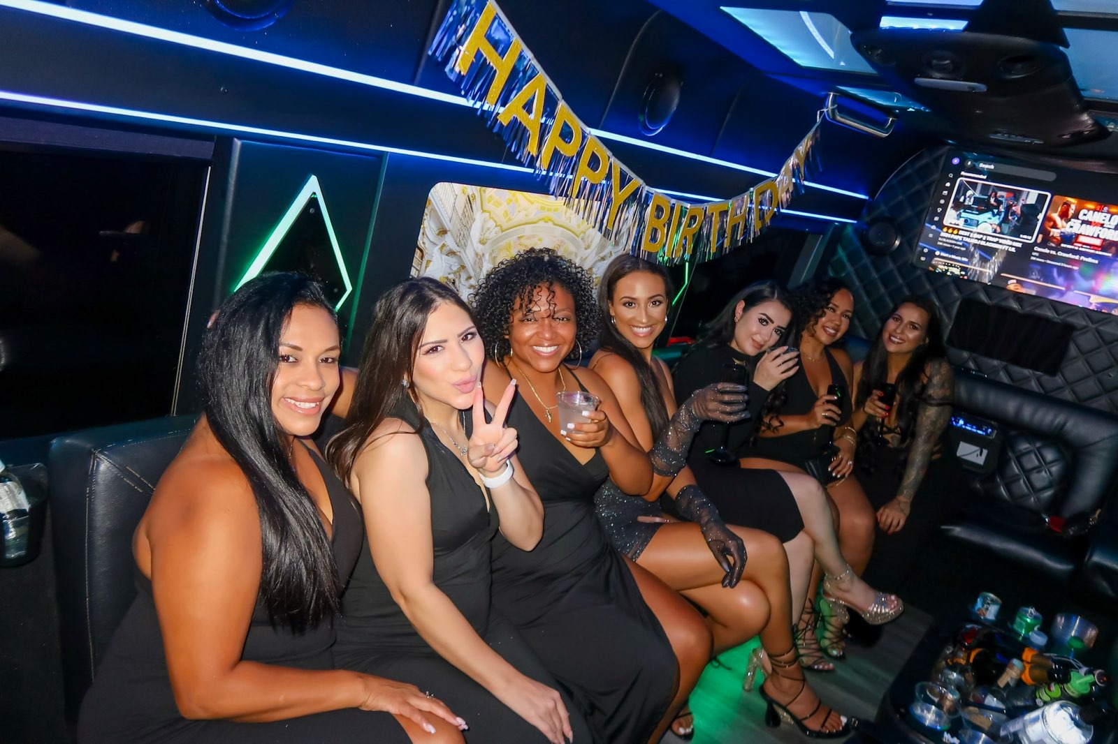 We operate two identical 12–14 passenger Mercedes Sprinter Limo Vans. Each Sprinter delivers the perfect mix of comfort and style, with plush seating, professional chauffeurs, three 40" HD TVs, immersive surround sound, color-changing LED lighting, and a fully stocked wet bar. Whether you're celebrating or relaxing, we’ll tailor the ride to your vibe.